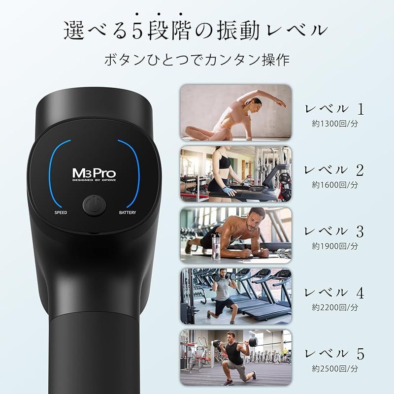 opove M3 Pro 2 筋膜リリースガン 12mm振幅 最大約32kg耐圧 2600mAh 6本大容量バッテリー 5段階強力振動 6種類アタッチメント ハンディガン 日本語取扱説明書付き ブラック ROLENORIO_COM_BR