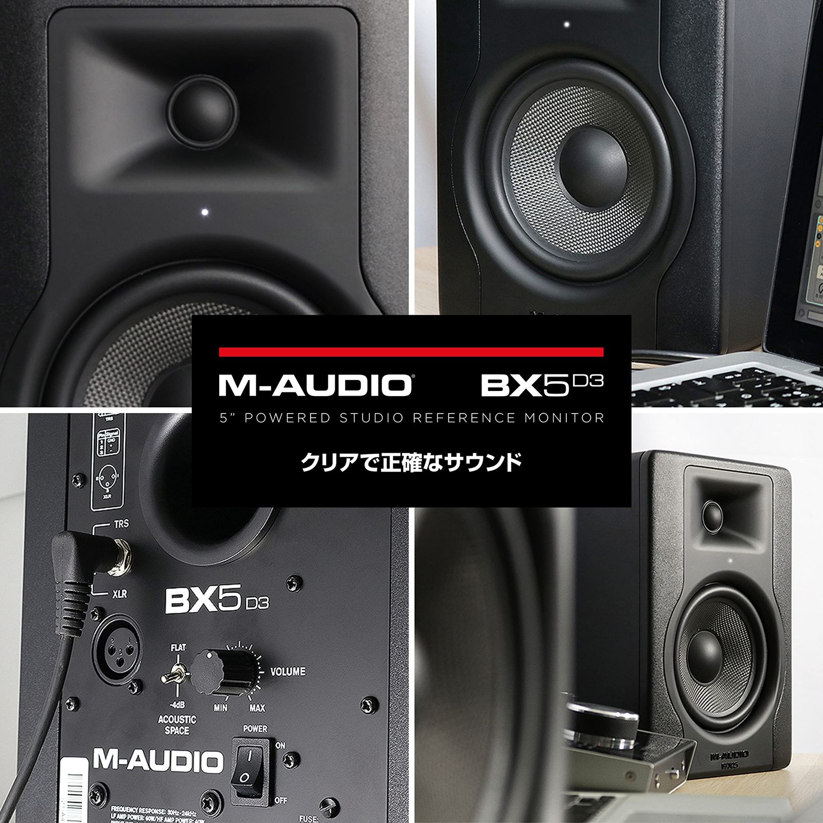 M-Audio スタジオモニタースピーカー 大型パワードアクティブスピーカー アンプ内蔵スピーカー 重低音 ハイレゾ DTM 音楽制作 XLR シングル 100W 5インチ BX5 D3 ROLENORIO_COM_BR