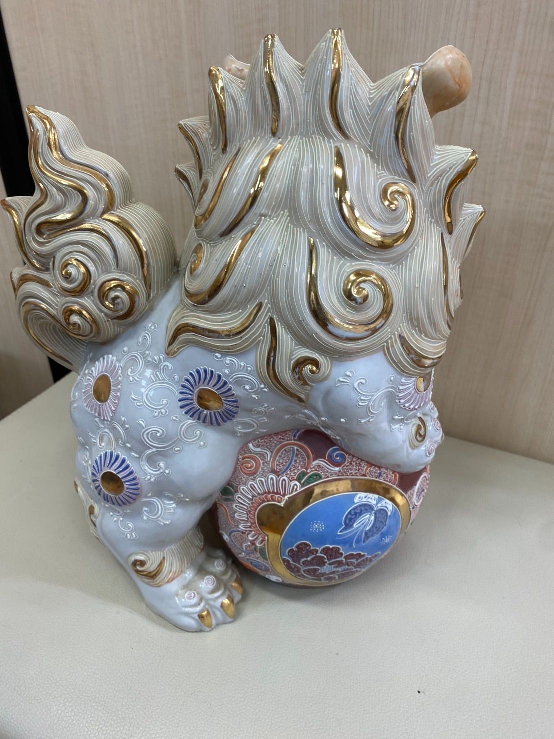 九谷焼 獅子 陶器 置物 インテリア アンティーク ヴィンテージ 九谷 古物 骨董 ビンテージ インテリア 昭和レトロ 動物 沖縄 シーサー 刻印 玉 収集 コレクター 玄関 アニマル ROLENORIO_COM_BR