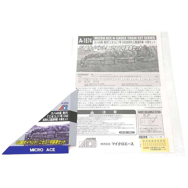マイクロエース Nゲージ スハ45 急行 ニセコ C62お別れ三重連列車 9両の検索結果