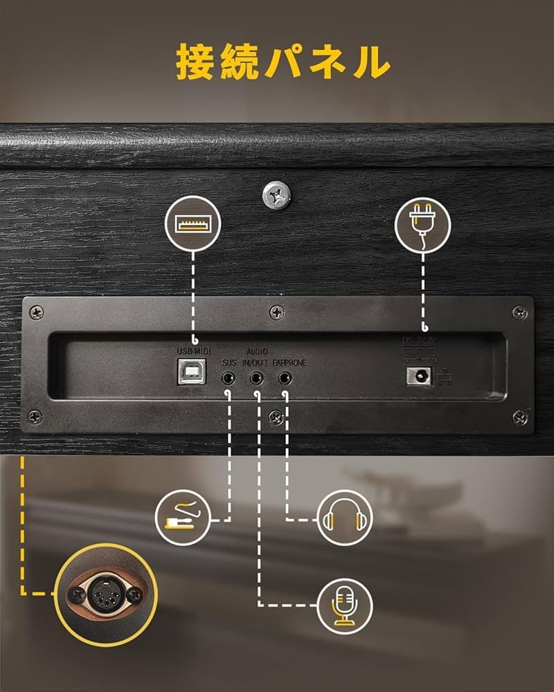 電子ピアノ ハンマーアクション 88鍵盤 木製 自動で蓋が閉まる ピアノ 88鍵ピアノ ペダル付き MIDI対応の検索結果