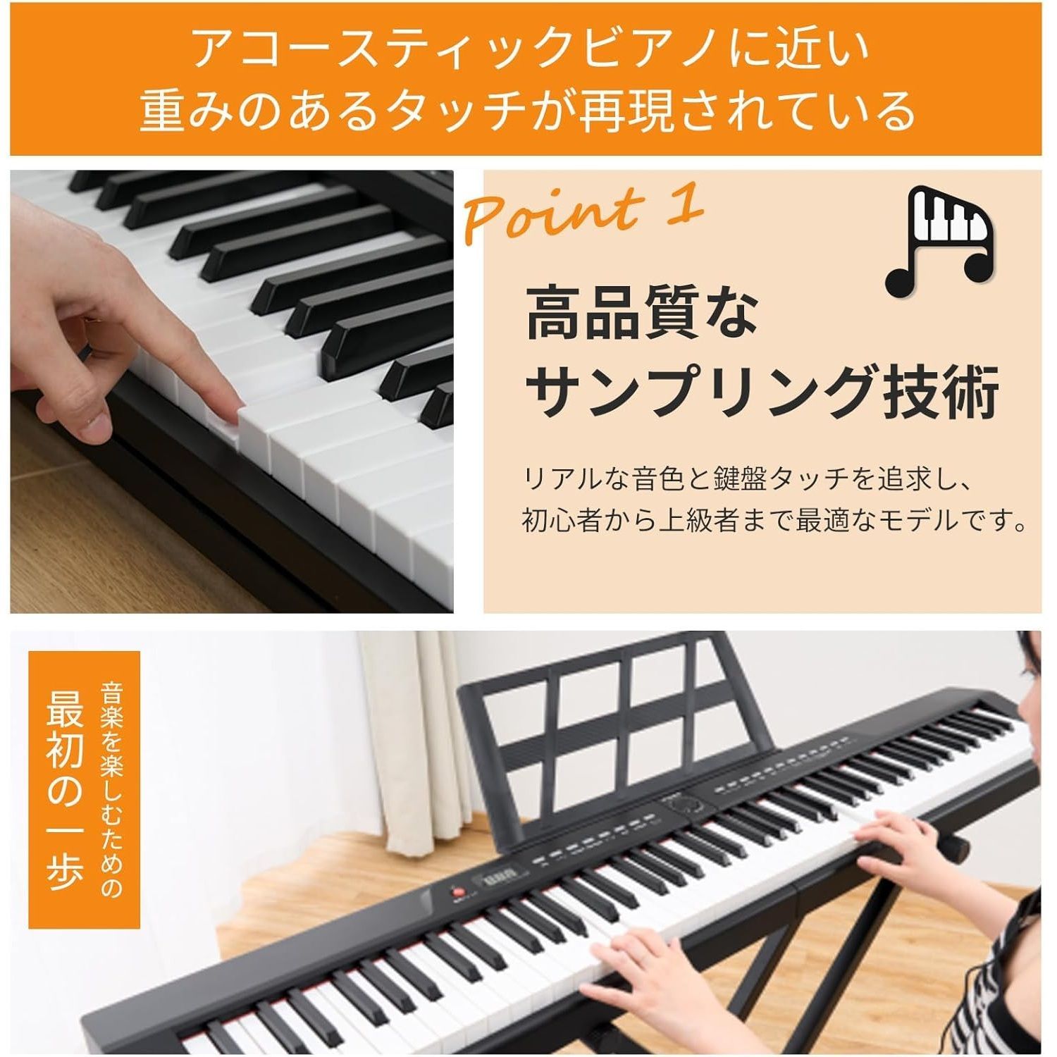 AORTD 電子ピアノ 88鍵盤 ピアノスタンドセット 日本語表記 MIDI対応 200音色 200リズム 充電式 コンパクト 軽量 スリム サステインペダル 収納バッグ付き イヤホン 鍵盤シール 日本語説明書 ROLENORIO_COM_BR