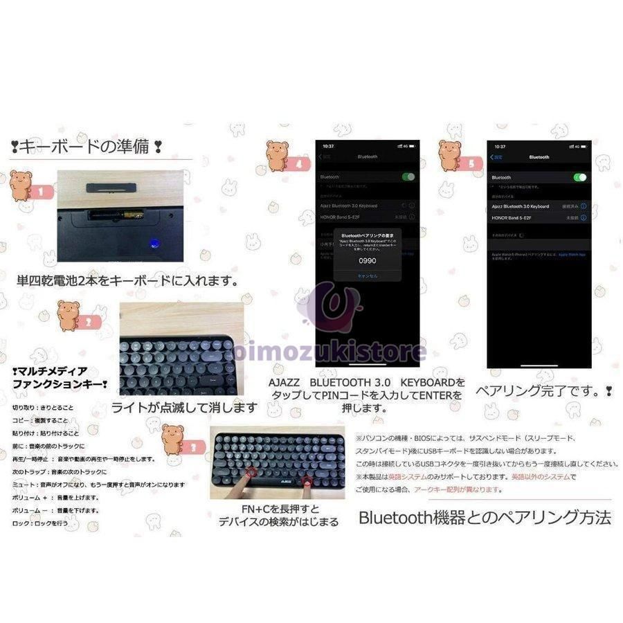 ワイヤレスキーボード bluetooth 静音 軽量 7色選択 タイプライター風 84キー レトロ かわいい ワイヤレス 無線 円形キーキャップ タブ ROLENORIO_COM_BR