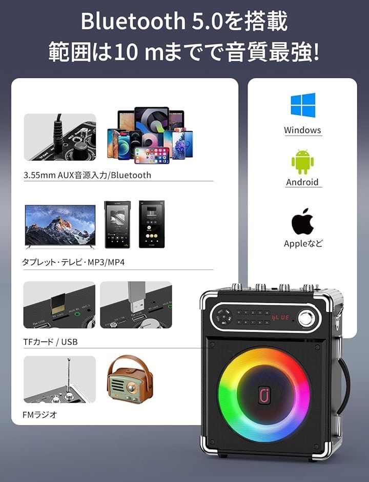 JYX スピーカーセット 拡声器 ワイヤレスマイク2本 Bluetooth 5.0対応 高低音強化機能搭載 黒の検索結果
