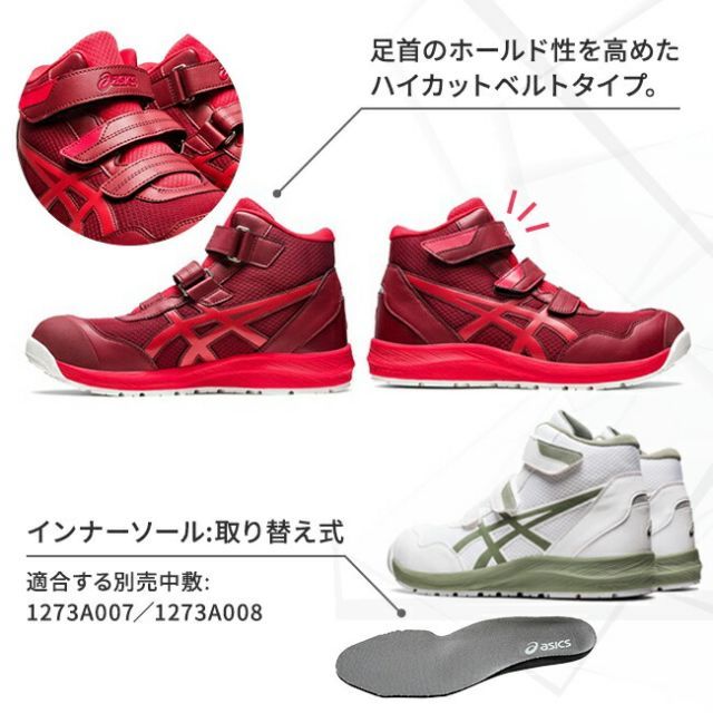 種類27 102 ホワイト×Cレッド 29.0cm アシックス asics 作業靴 安全靴 ウィンジョブFCP301 cp301 スニーカー マジック マジックテープ メンズ レディース 軽量 樹脂 先芯 A種 短靴 中敷 現場 作業靴 作業用 靴 かっこ