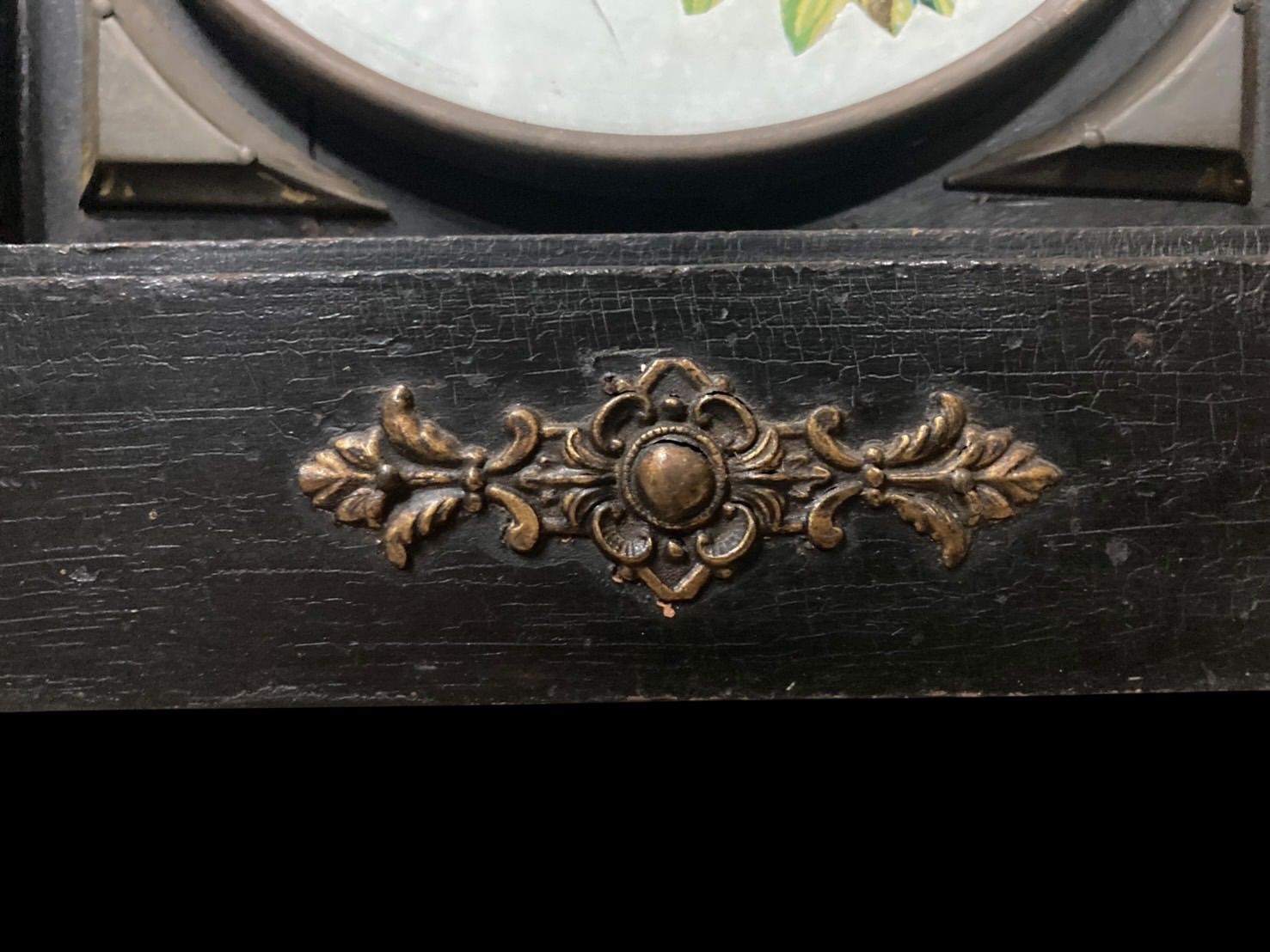 TAKANO タカノ 高野 製 アンティーク ヴェネチアンキーワインドマントルクロック 置時計 スモールセコンド付き ガラス絵 パンジー 真鍮 ゼンマイ式 ボンボン 大正ロマン 古時計 レトロ 時代物 年代物 古美術 骨董 N25J 出西 27 ROLENORIO_COM_BR