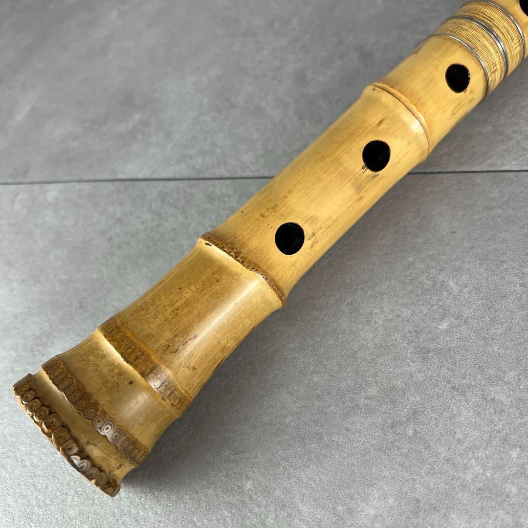 都山流 龍水 歌口銀巻き 銀三線 尺八 全長約48cm 和楽器 ジャンクS10401585