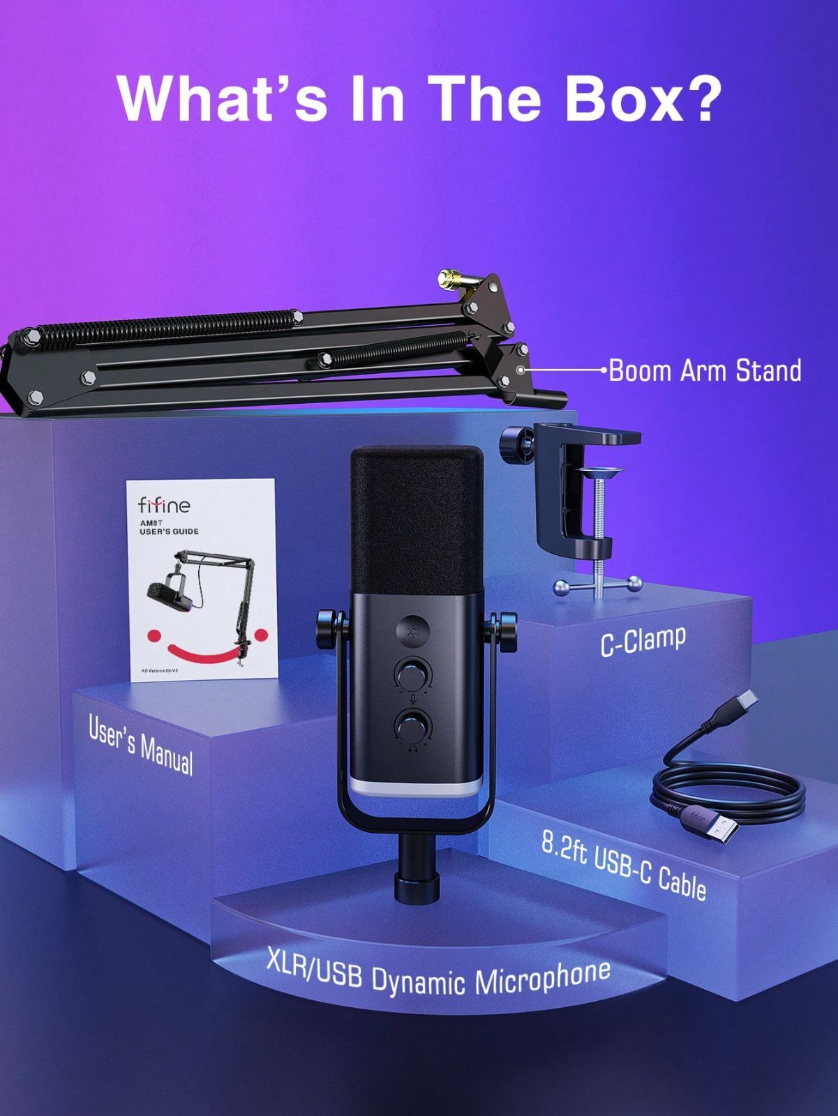 USB XLRダイナミックマイクキット ブームアームスタンド付き ヘッドフォンジャック ミュート RGB ライブストリーミング 録音 ポッドキャスト PCビデオ用 FIFINE AM8Tの検索結果