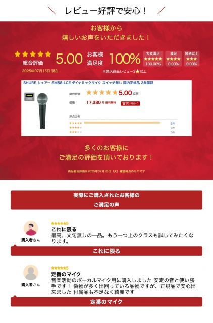 SHURE シュアー SM58-LCE ダイナミックマイク スイッチ無し 2年保証の検索結果