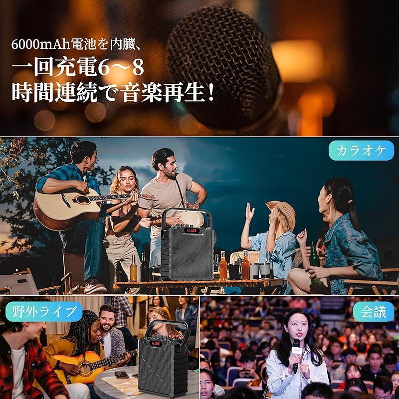 Giecy スピーカーセット 拡声器 ワイヤレスマイク2本 Bluetooth 5.0対応 充電式 UHFマイクロホン低音強化機能搭載 ポータブルマイクスピーカー拡声器 ホームパーティー カラオケ 会議 セミナー 登山キャンプ 街頭演説 学校行事 室外 防 0の検索結果