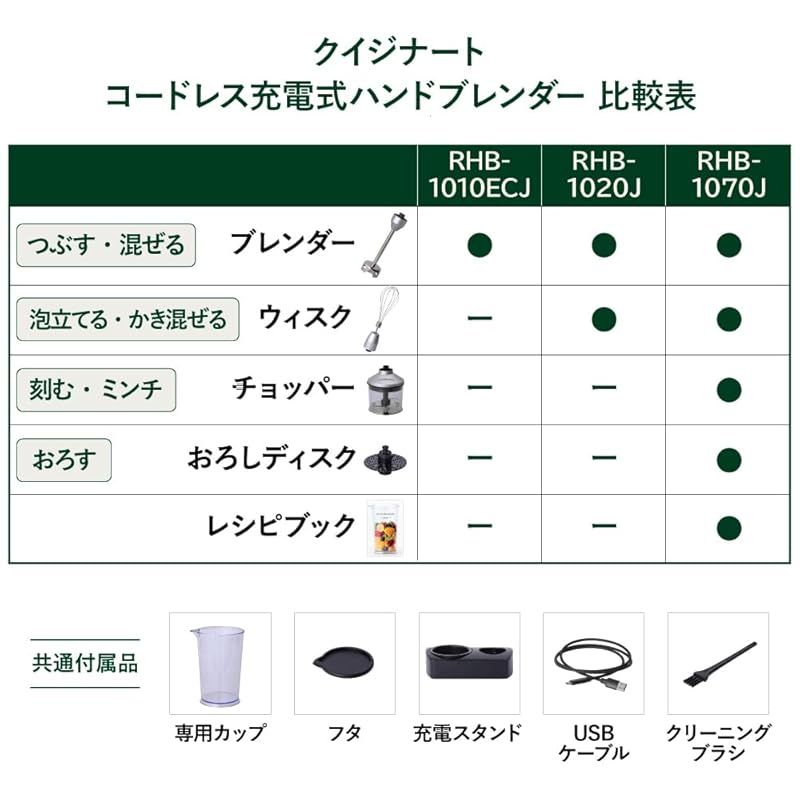 クイジナート コードレス 充電式 ハンドブレンダー つぶす 混ぜる 軽量 RHB-1010ECJの検索結果