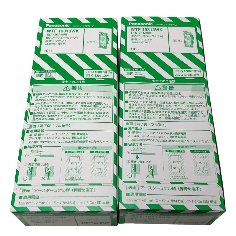 2箱セット Panasonic パナソニック WTF 19313WK 15A 20A兼用 コンセント 10個入 アース付 22511K111の検索結果