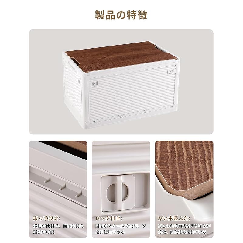 harumi 収納ボックス 折り畳みコンテナ 55.6L容量 木製蓋付き アウトドア 収納ケース 5面開き コンテナ ボックス キャンプ 全方向から取り出せる 折りたたみ 収納コンテナ 省スペース 衣装ケース 3段 衣装収納ケース 収納箱 キャスター付き 強い ROLENORIO_COM_BR