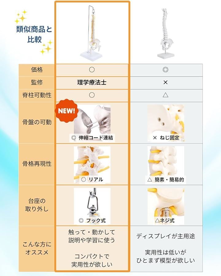 KIYOMARU 1 2サイズ 高精度 グニャと背骨を動かせる ミニ脊柱模型 約45cm 人体模型 骨模型 骨格標本 骨盤 台座付きの検索結果