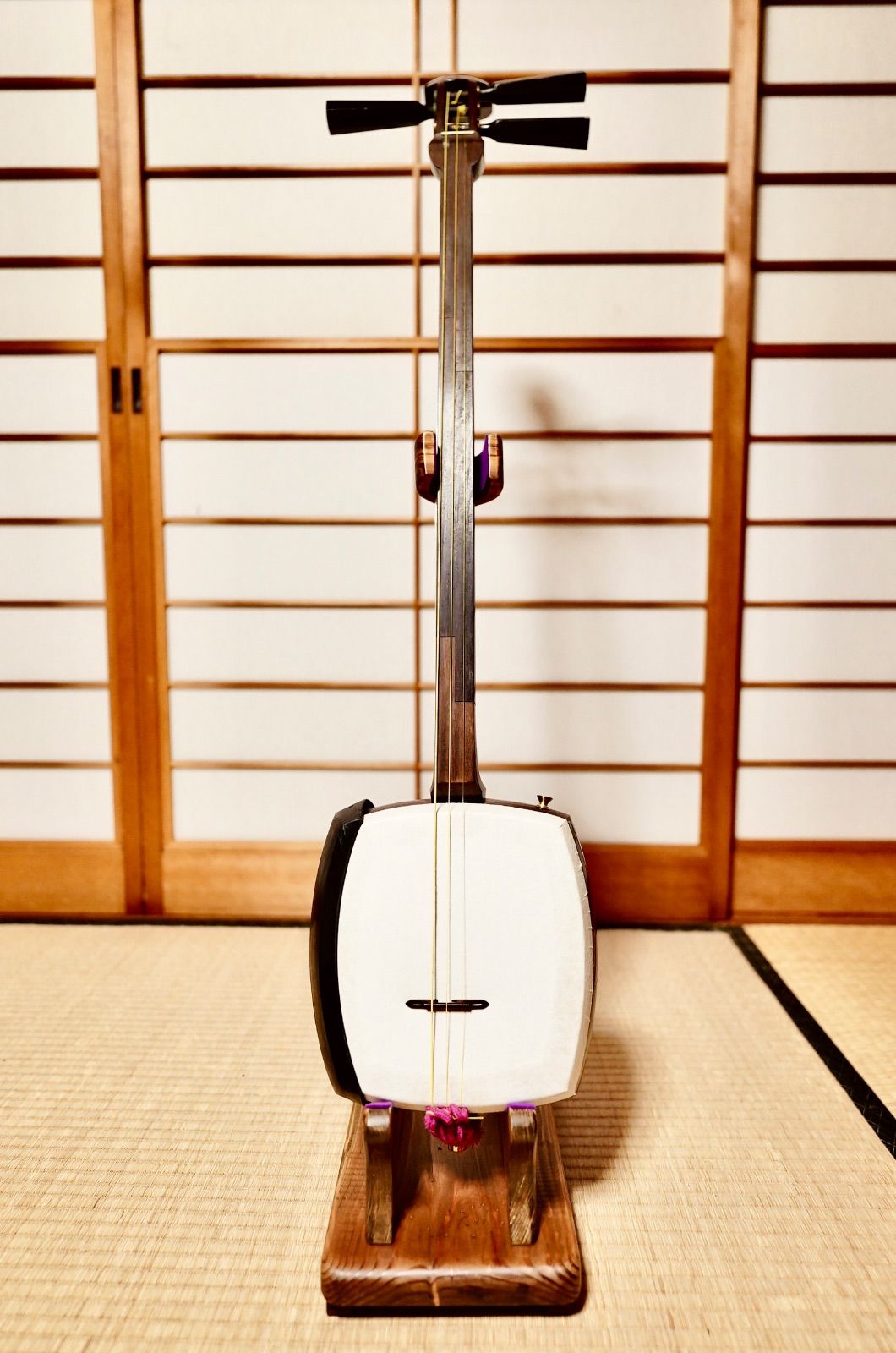 24時間以内に発送 手作り木工 木製三味線スタンド 黒漆 タイプB