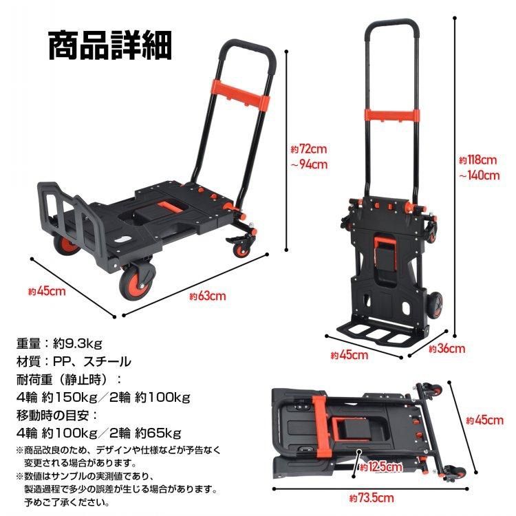 台車 ツールカート 折りたたみ 軽量 スリム キャスター 荷物運び スリム台車 折りたたみ台車 タイヤ 家庭用 手押し台車 キャリーカート 4輪 2輪 2way コンパクト ROLENORIO_COM_BR