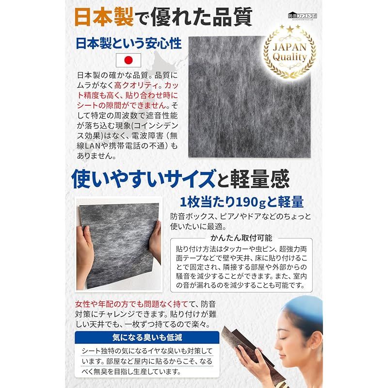 公式 遮音シート 60枚セット 1.2mm厚 防音ファストラボR 外部からの騒音の悩み や 部屋から漏れる音の軽減に 防音シート 防音マット 防音 防音材 防音室 壁 面密度 約2.1kg 縦30cm×横30cm 5.40の検索結果