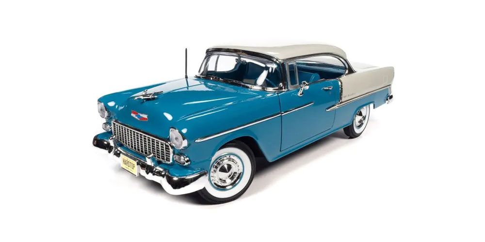 AMM1295 American Muscle 1 18 1955 シェビー ベル エアー ハードトップ スカイラインブルー インディアアイボリー ROLENORIO_COM_BR