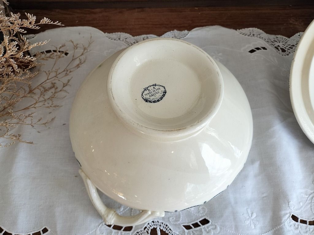 フランス アンティーク リボン絵付き 素敵な 蓋つき スーピエール Salins 1900年の検索結果