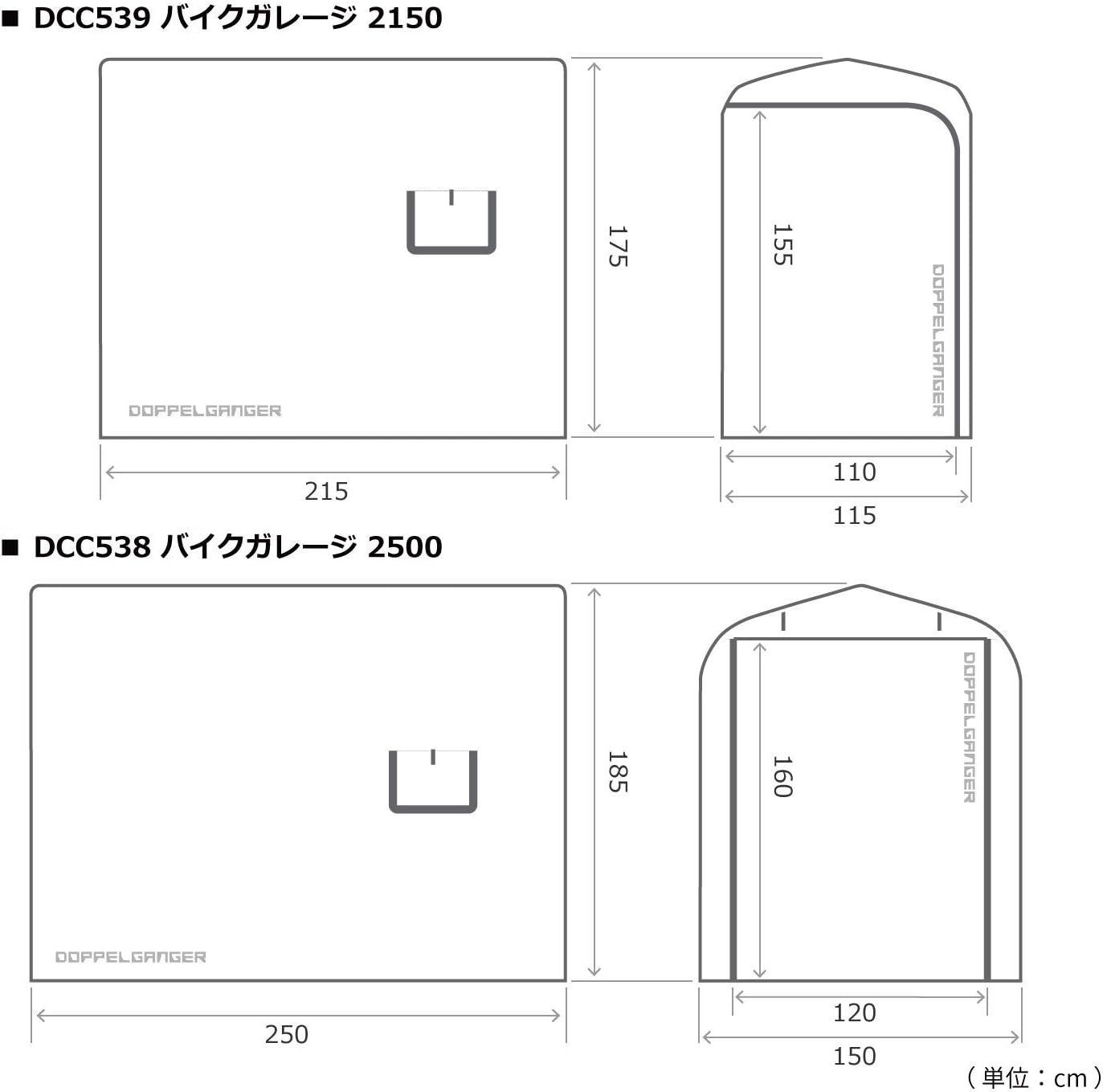 ドッペルギャンガー バイクガレージ 奥行2500mm 屋外簡易車庫 大型バイク ガレージ W150×L D 250×H185cm DCC538-GYグレー ROLENORIO_COM_BR