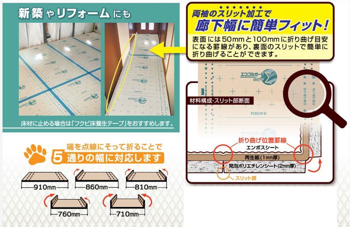 床養生シート 床 養生板 養生材 エコフルガードΣ シグマ 四つ折りタイプ 910mm×1820mm 100枚セット EYGS4HC 再生紙 防水エンボスシート 発泡層 フロア フローリング 現場 建築現場 建築工事 内装工事 新築 リフォーム 引越し DIY ROLENORIO_COM_BR