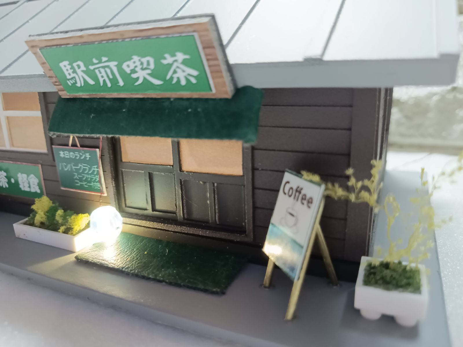 HOゲージ 夜景 着色品 ストラクチャー 緑の駅前 喫茶店 照明付き建物 完成品の検索結果