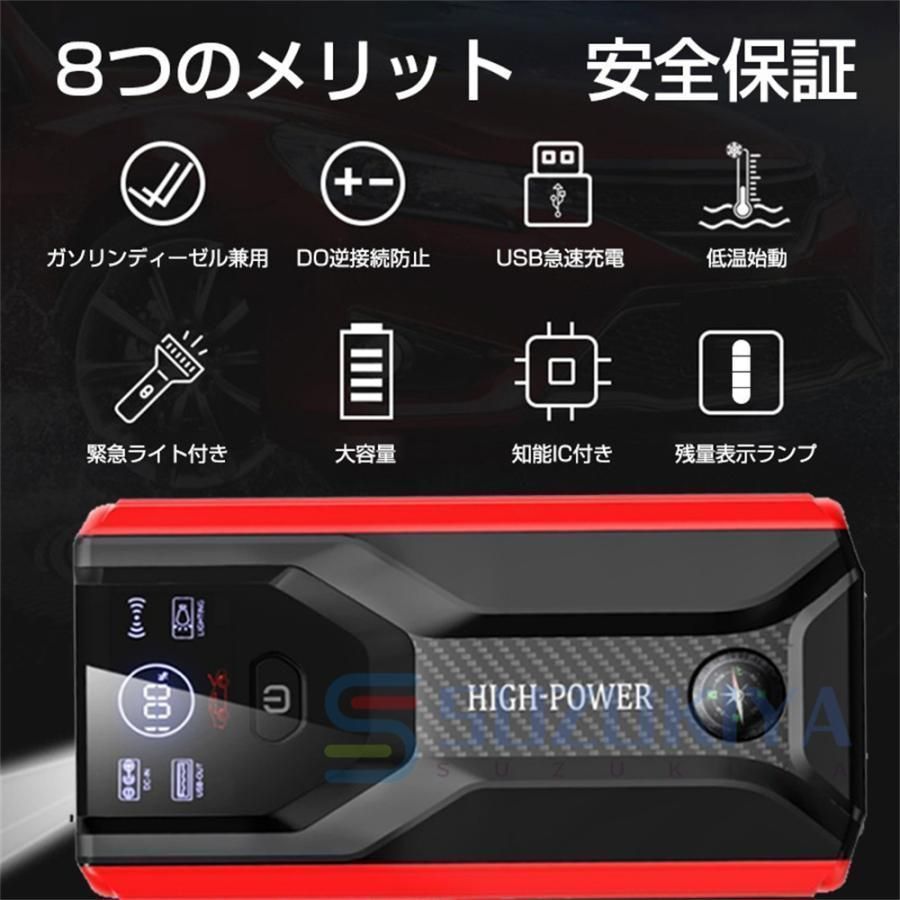 フルスクリーン表示 ジャンプスターター 12V 99800mAh エンジンスターター ワイヤレス充電 エアコンプレッサー 大容量 車 バイク 非常用 LE