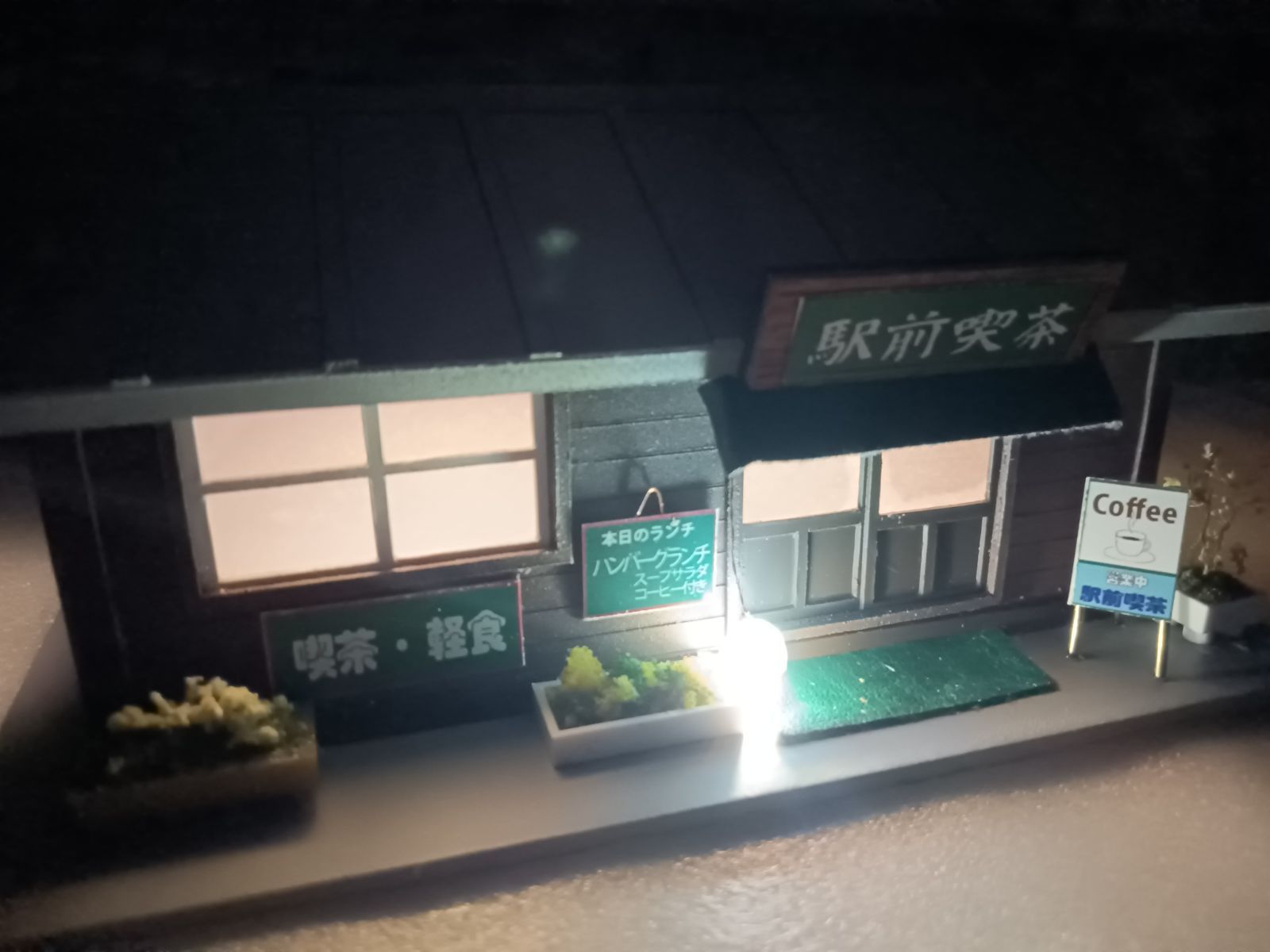 HOゲージ 夜景 着色品 ストラクチャー 緑の駅前 喫茶店 照明付き建物 完成品の検索結果
