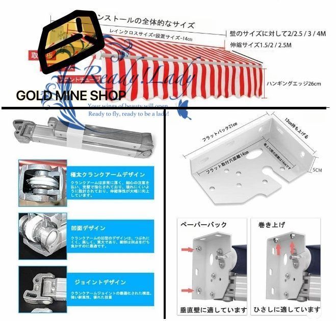 オーニングテント ひさし 金具 日除け シェード オーニングテント 伸縮式 オーニングテントひさし 雨除け オーニング オーニングテント 伸縮式 ベランダ ひさし 巻き取りガゼボ 4 2.5M