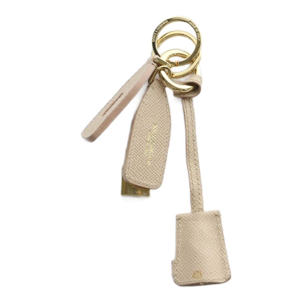 ドルチェ-ガッバーナ ドルガバ DOLCE-GABBANA キーリング チャーム ストラップ レザー ロゴ ゴールド金具 ベージュ GY11 MQ ROLENORIO_COM_BR