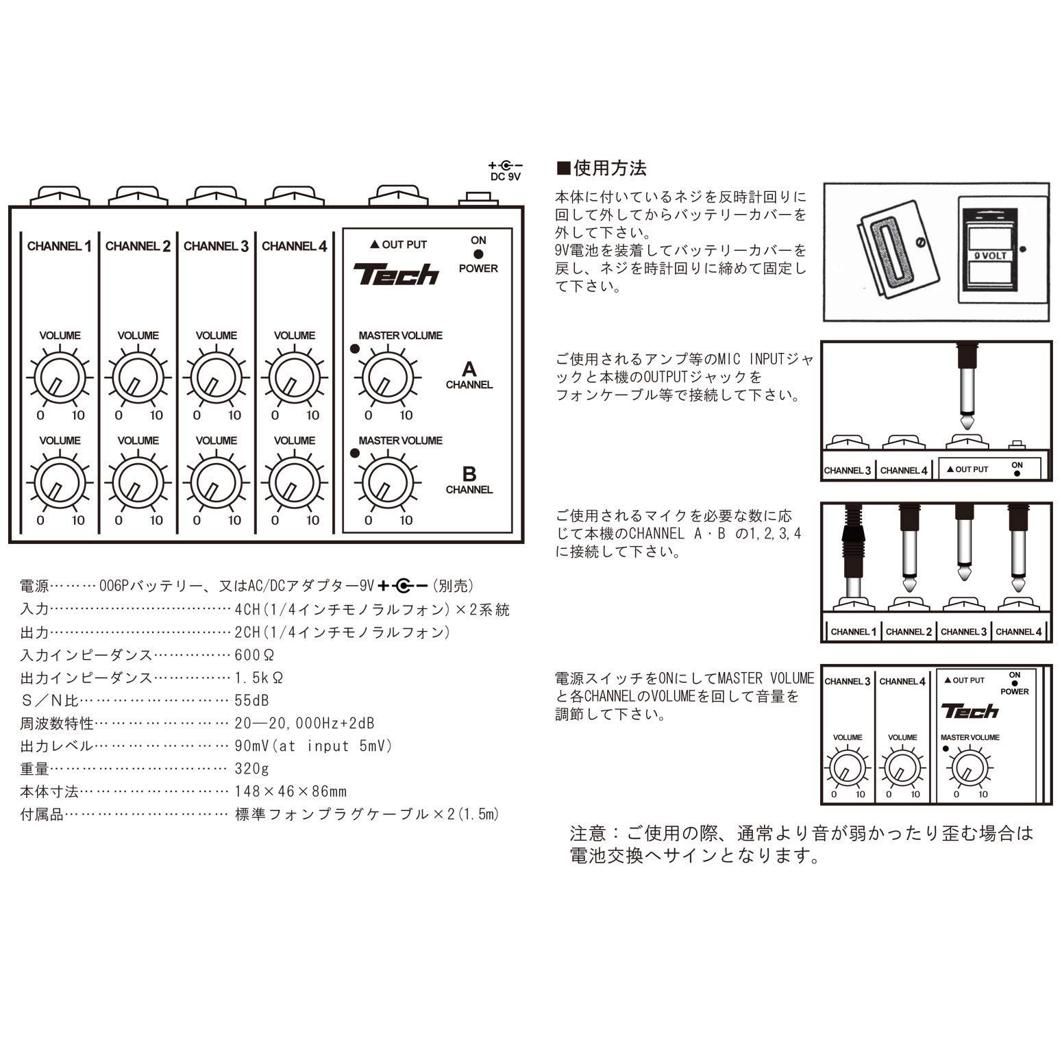 TECH 8ch マイクロミキサー 1.2mケーブル X 2付属 TM-8の検索結果