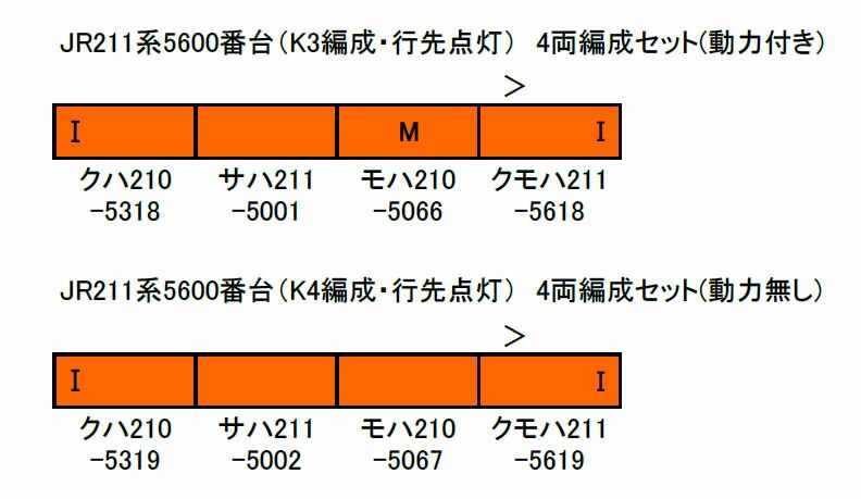 JR211系5600番台 K3編成 行先点灯 4両編成セット 動力付き グリーンマックス 30974 鉄道模型 Nゲージの検索結果
