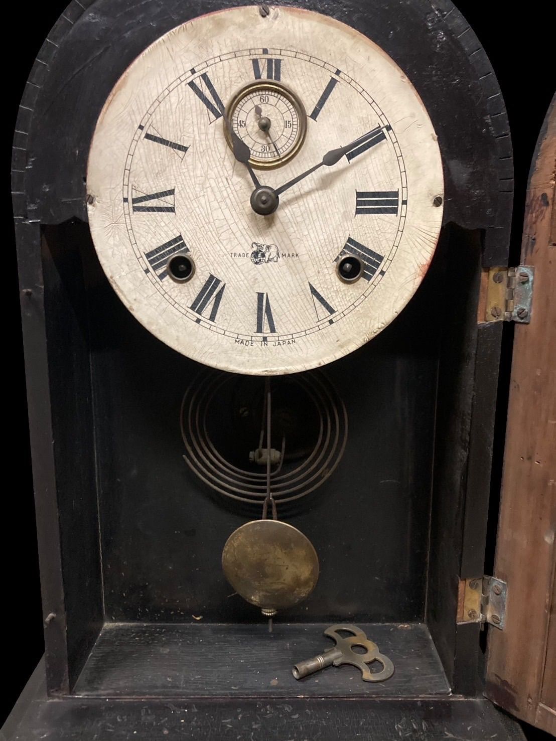 TAKANO タカノ 高野 製 アンティーク ヴェネチアンキーワインドマントルクロック 置時計 スモールセコンド付き ガラス絵 パンジー 真鍮 ゼンマイ式 ボンボン 大正ロマン 古時計 レトロ 時代物 年代物 古美術 骨董 N25J 出西 27 ROLENORIO_COM_BR