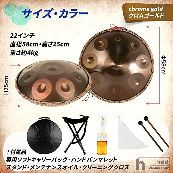 heizi ハンドパン スチールドラム 9音 22インチ ハンドパンドラム ソフトケース マレット ゴールドの検索結果