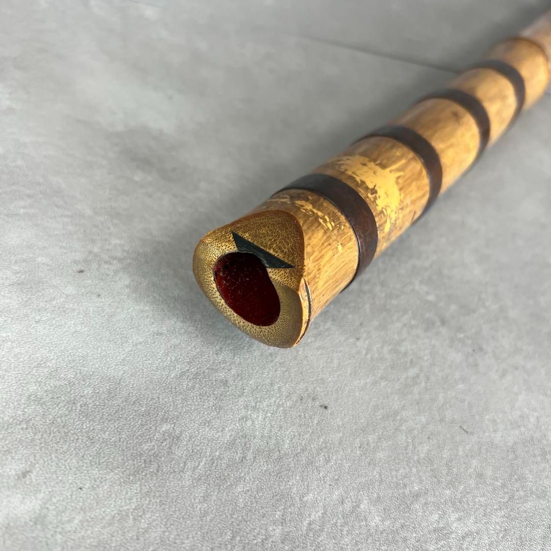フォローで20%割クーポン配布中 人気 尺八 琴古流 バチ型 銘あり 竹治 1印 2尺2寸 5孔 銀三線 真竹 漆 25M9250TR0005-03