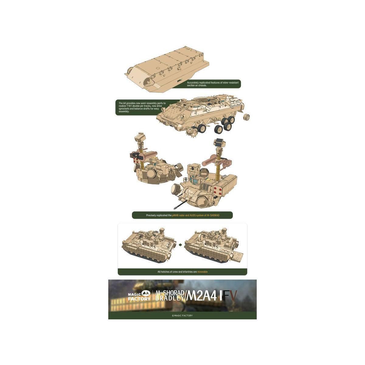 Magic Factory 1 35 M2A4 ブラッドレー 歩兵戦闘車 w M-SHORAD 機動短距離防空 システム 3 in 1 スケールモデル ミリタリープラモデル 模型 ROLENORIO_COM_BR