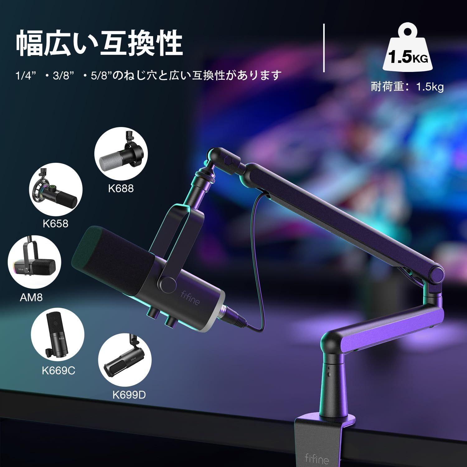 FIFINE ブームアーム マイクスタンド マイクアーム コンデンサーマイク用 3 8 5 8 卓上マイクスタンド 下から 角度調節 360度回転 金属製 ケーブル収納 ゲーム実況 配信 録音 在宅ワーク 黒 BM88の検索結果