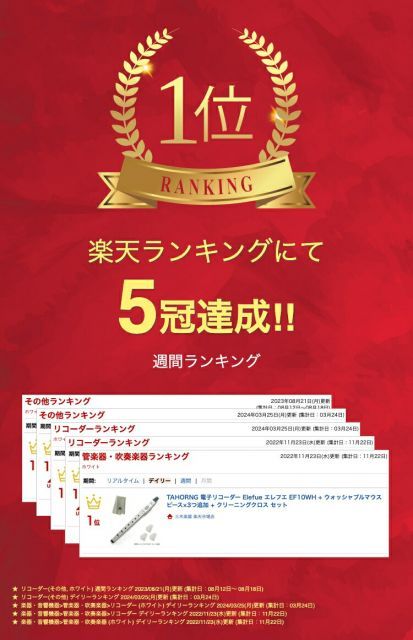 TAHORNG 電子リコーダー Elefue エレフエ EF10WH ウォッシャブルマウスピース×3つ追加 クリーニングクロス セットの検索結果