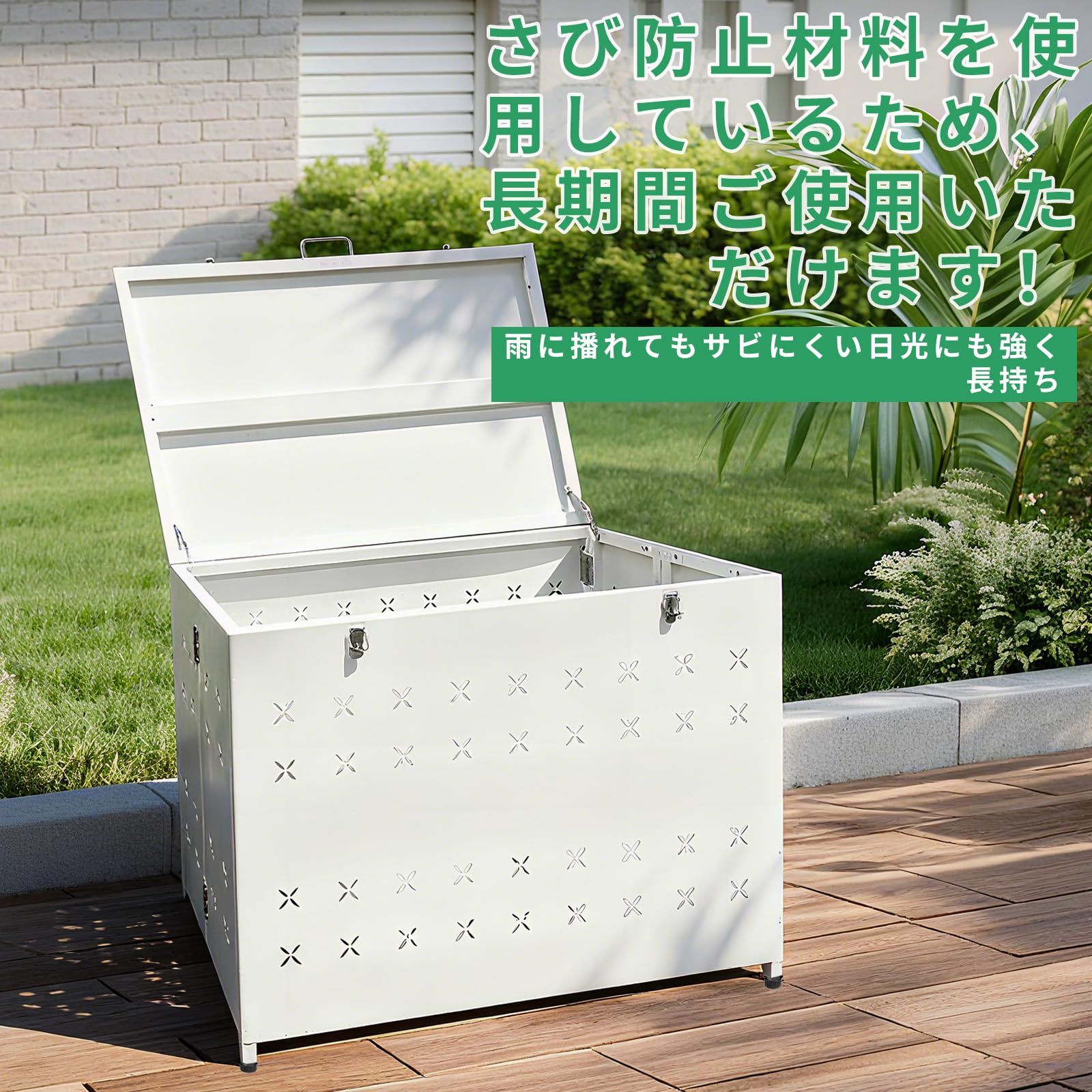 PakOne ゴミ箱 屋外 ゴミステション ゴミ収納庫 大型 大容量 折り畳みデザイン 簡単組立 カラス除け 野良猫対策 ごみ集積所 ふた付き ごみ収集ボックス 多用途収納ボックス 2本の鍵付き 日本語説明書付き クローバー 白 M 横幅63㎝ 折り WWW_ROLENORIO_COM_BR