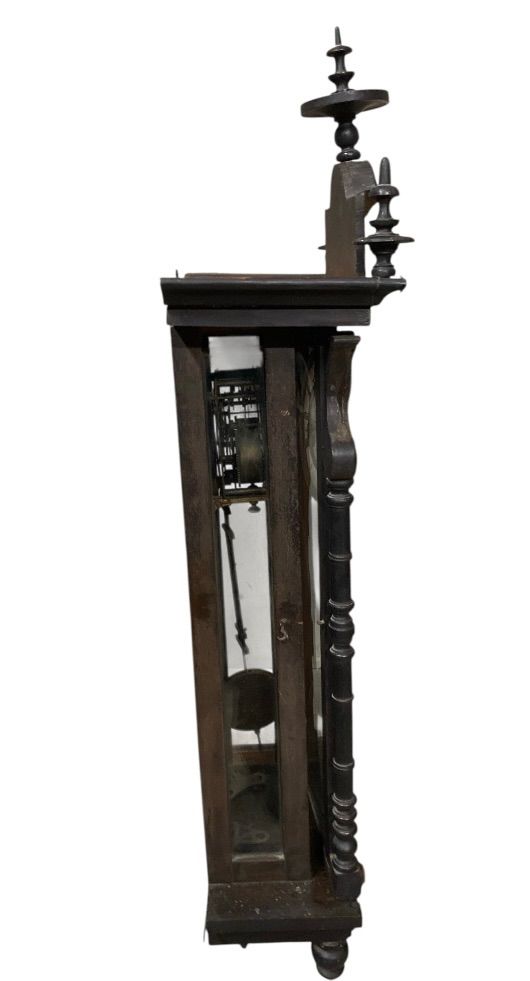 ドイツ 時計 ユンハンス アンティーク レトロ 柱時計 黒柿 木材 有名 ウィーン レギュレーター Vienna Regulator 壁掛け時計 19世紀中頃〜20世紀初頭 文字盤 ローマ数字 振り子 木製 彫刻 動作未 現状品 N25J T 30 WWW_ROLENORIO_COM_BR