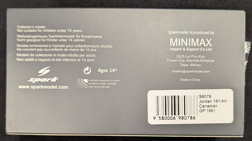 Spark model 1 43 Jordan 191 No.33 4th Canadian GP 1991 Andrea de Cesaris WWW_ROLENORIO_COM_BR